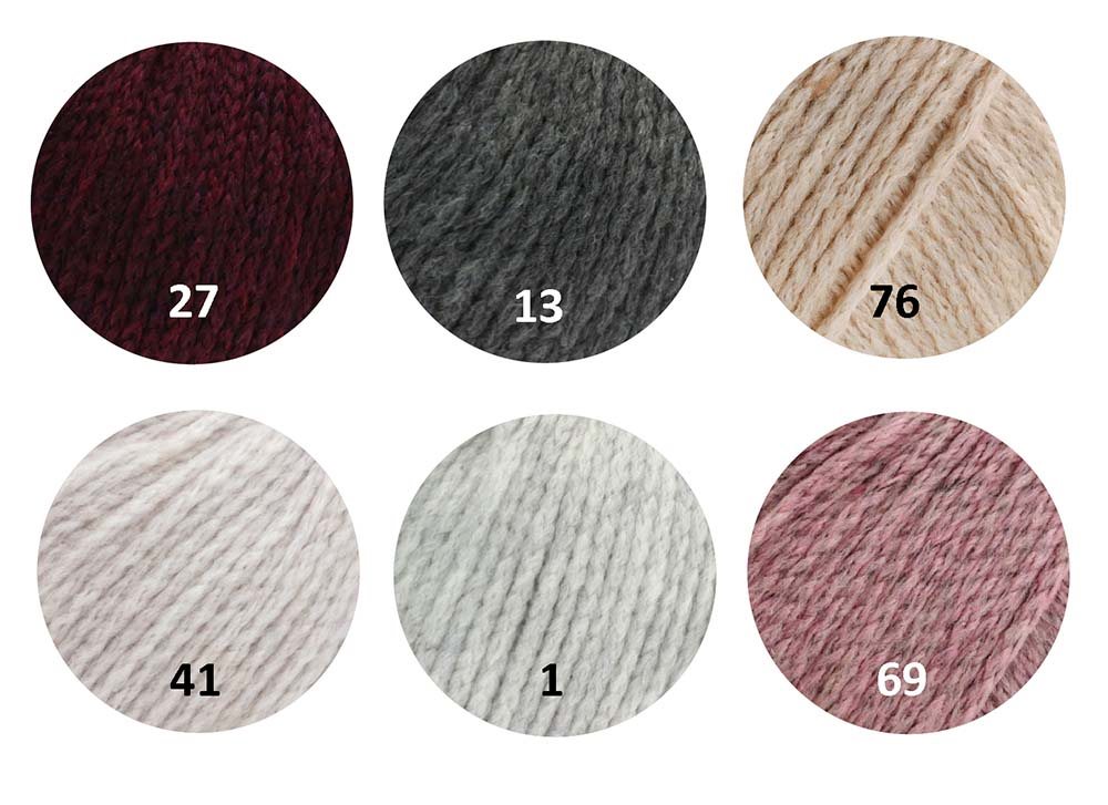 Kvalitet: 78% merino, 12% kashmir, 10% polyamid