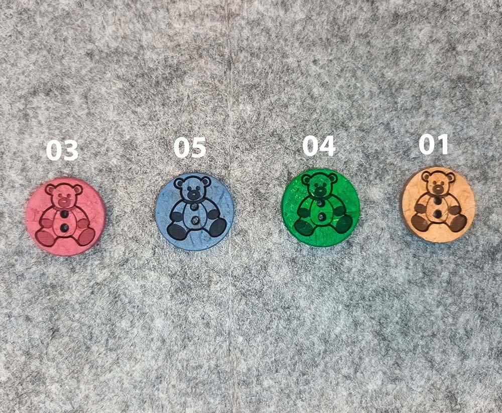 Forside › Sytilbehør › Knapper og Pynt Bamse Knap Varenummer: 18633 Bamse knapper i kokos. Søde bamse knapper i kokos, 4 forskellige farver med to huller til påsyning. Knappen er 15Ø mm Fv. Vælg variant 8,00 DKK pr. stk.inkl. moms Antal Køb Tilføj til Ønskeskyen Måske er du også interesseret i følgende produkter Boss Bear Strygemærker 35,00 DKK Bamse Strygemærke 30,00 DKK
