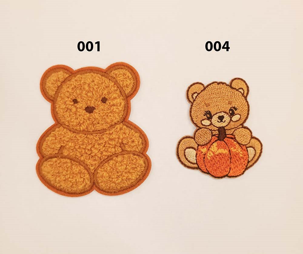 Søde bamse strygemærker. Den ene med lidt ulden boucle overflade den anden klassisk bamse med et græskar.