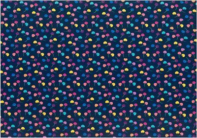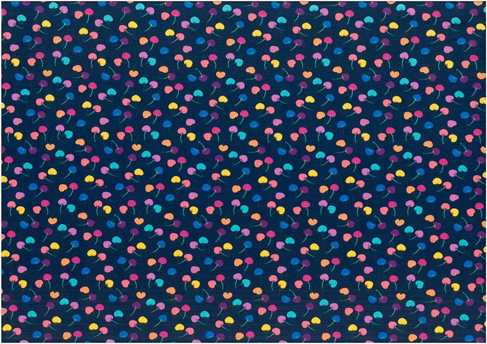 Blød bomulds jersey i mørkeblå med forskellig farvet kirsebær mønster.