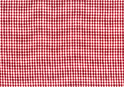 Fastvævet blød polyester viskose mix med lidt creppet overflade i små råhvide og røde tern.