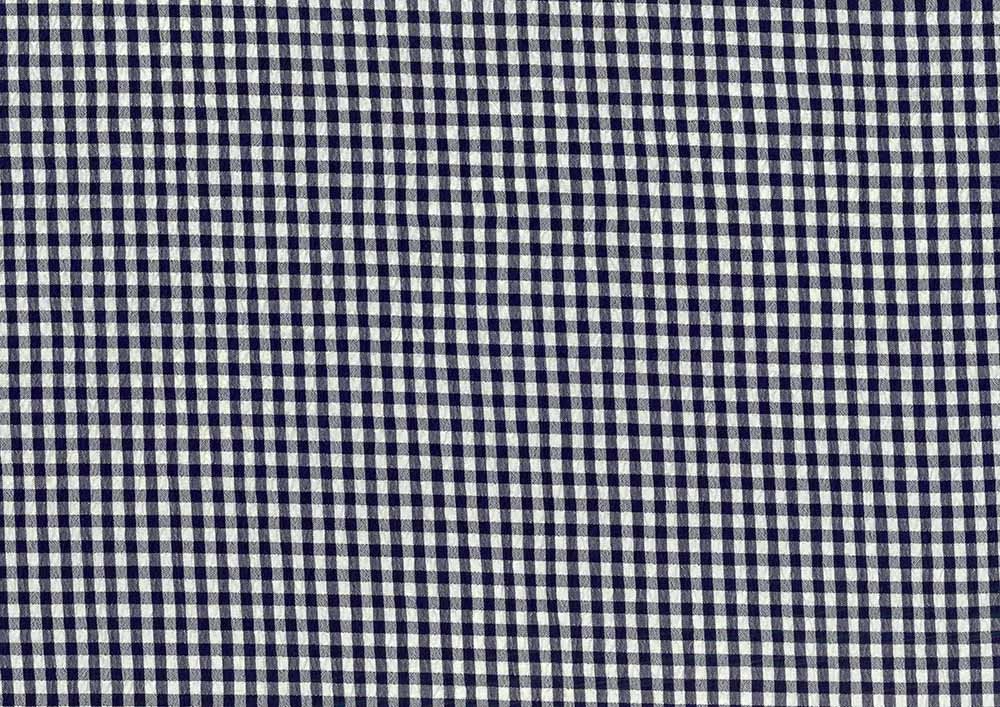 Fastvævet blød polyester viskose mix med lidt creppet overflade i små råhvide og blæk blå tern.
