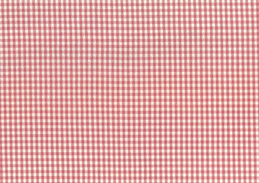 Fastvævet blød polyester viskose mix med lidt creppet overflade i små råhvide og rosa tern.