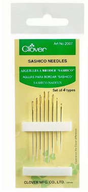 Clover Sashiko nåle som er kendt fra japansk broderi. Pakken indeholder 8 nåle i 4 størrelser, så der er 2 af hver.