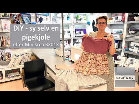 Minikrea 33013 er en supersød pigekjole i jersey, men her har Lene kombineret jersey overdel med en flot nederdel i fast bomuldsstof med print