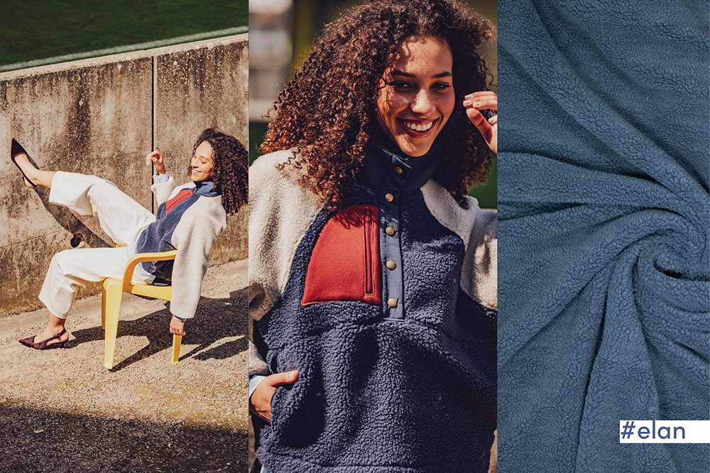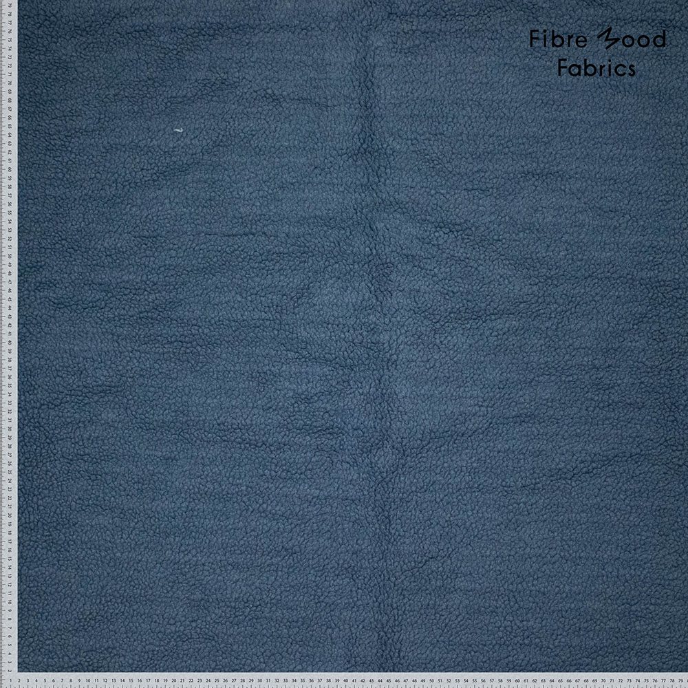 Elan Teddy Jeans Blue er en kraftig fast polyester kvalitet, som er lidt bamset i looket i en mørk jeans blå farve.