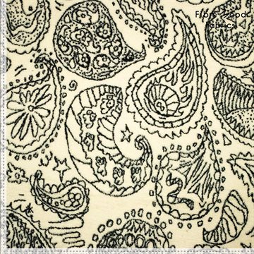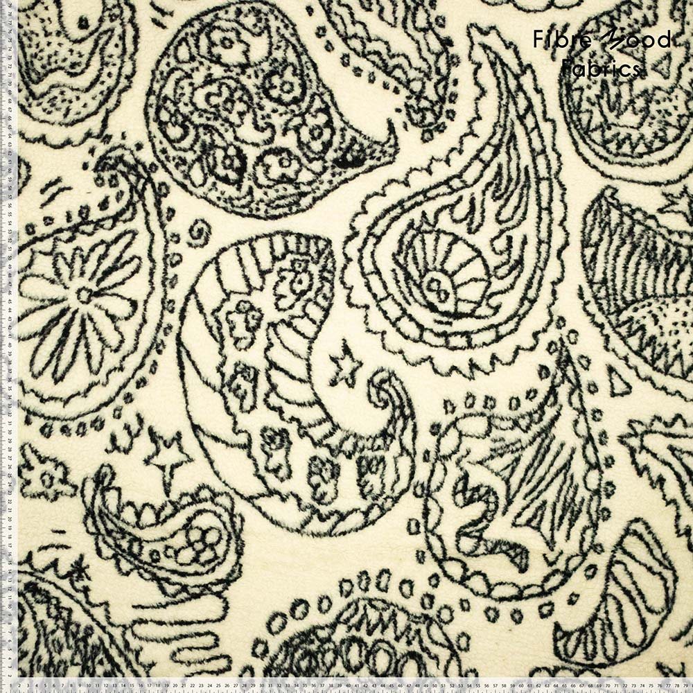 Ember Teddy White er en kraftig fast jacquard polyester kvalitet, som er lidt bamset i looket i knækket hvid med stort paisley mønster.