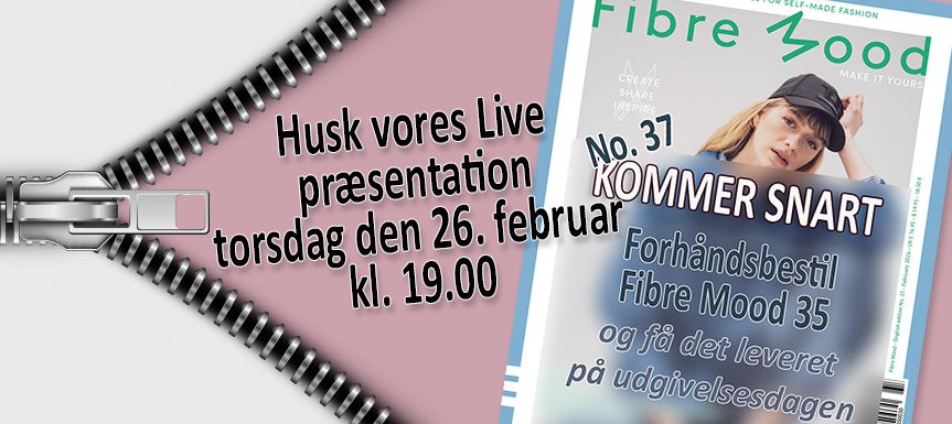 Forside › Kundeservice › Aktiviteter 26. februarFacebook live med nyheder og Fibre Mood 37 Torsdag den 26. februar, kl. 19 på facebook Stof og Sy, præsenterer vi spændende nyheder inden for strik og syning, herunder det nyeste nummer af Fibre Mood og en andre spændende nyheder Du kan forhåndsbestille Fibre Mood 37 allerede nu! Vi sender "Live" på facebook Stof og Sy - kan du ikke være med Live, kan du se hele præsentationen på facebook og Youtube Du kan være med fra hele landet - ja hele Verden, ved at gå ind på vores facebook side her Du kan også allerede nu, "Følge" os og slå "Notifikationer" til, så får du en notifikation, når vi starter med at sende Live. Vi glæder os til at "se" dig Andre aktiviteter: