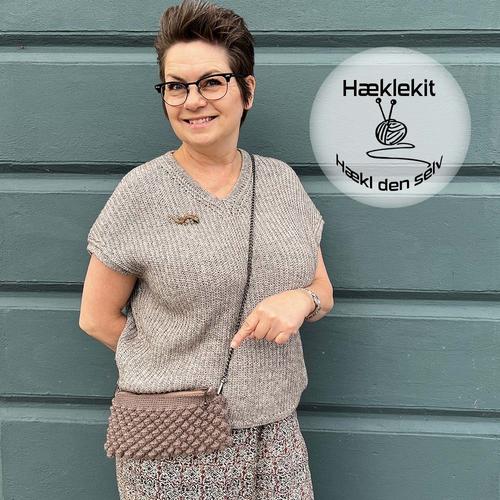 Hæklekittet indeholder garn og enkeltopskrift (på norsk)