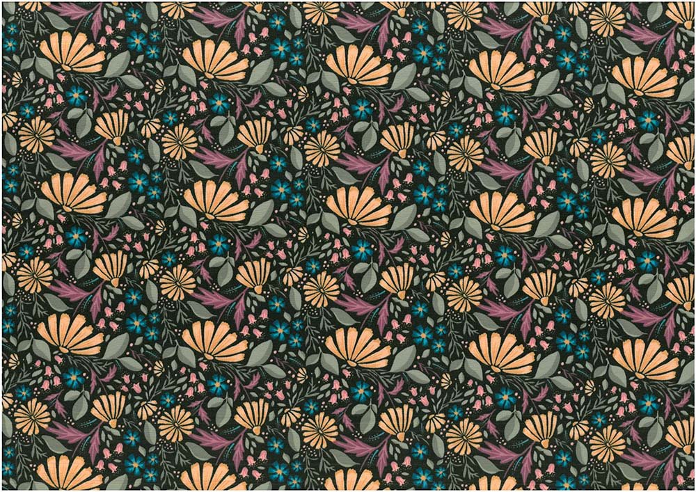 Blød bomulds jersey i helt mørk oliven grøn baggrund med flot blomster print.