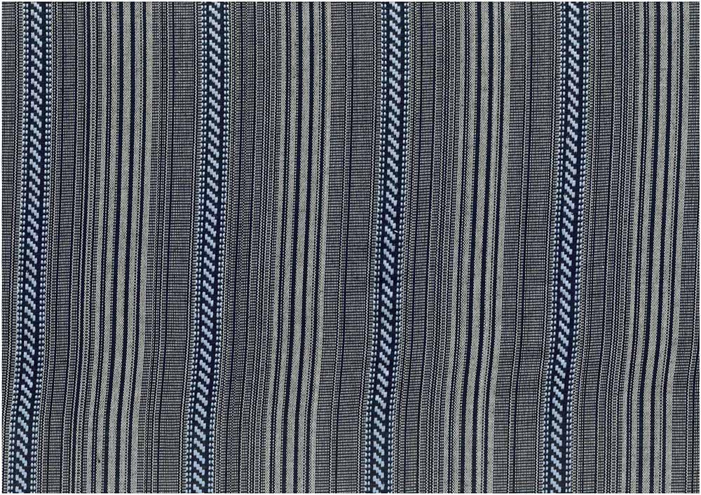 Fast gennemvævet blødt stof med halv tungt fald i forskellige striber i blå og grå nuancer.