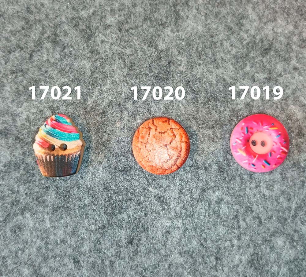 Forside › Sytilbehør › Knapper og Pynt Kage Knapper Varenummer: 300320261000 Kage knap. Sjove knapper med af søde sager, lavet af plast. Her er en muffin/cupcake, en klassisk cookie, og en lyserød donut. Mål: Cookie Ø 15mm Donut Ø 15mm Muffin Ø 16 mm Fv. Vælg variant 15,00 DKK pr. stk.inkl. moms Antal Køb Tilføj til Ønskeskyen Måske er du også interesseret i følgende produkter Gütermann Knaptråd 23,00 DKK Prym Kai tråd saks 175,00 DKK