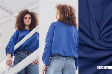 Lotta Rib er en blød bomulds rib, tube strikket 2 x 2 rib i flot korn blå farve og som matcher til stoffet Kornelia Lotta Blue French Terry.