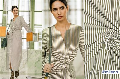 Forside › Metervarer › Bomuldsstof med mønster Milena Khaki Stripe FM Varenummer: 271120251009 Milena Khaki Stripe er en klassisk fastvævet bomuldsstof med hvide og khaki grønne striber. Striberne måler ca. 5mm i bredden. Fra Fibre Mood 36 Velegnet til beklædning som kjoler, nederdele, skjorter mm. Kval.: 100% bomuld Bredde: 145 cm Vask: 30 grader Vægt: 115 gram pr m2 OEKO-tex standard 100 1,30 DKK pr. cminkl. moms Antal Køb Tilføj til Ønskeskyen Måske er du også interesseret i følgende produkter Sytråd 32,00 DKK Fibre Mood 36 145,00 DKK Ivanna Khaki FM 1,30 DKK