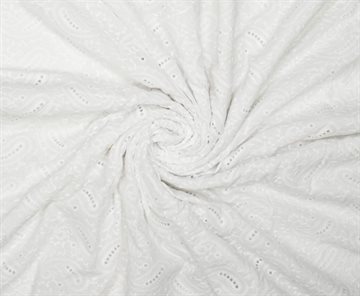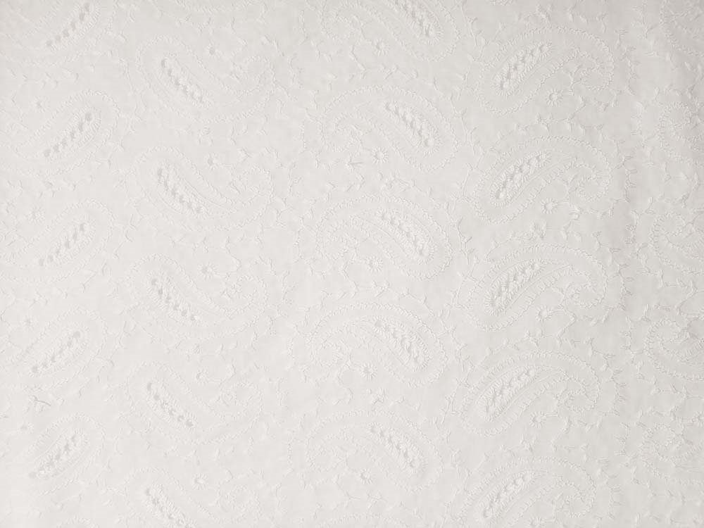 Flot fastvævet hvid bomulds broderi anglaise stof med paisley mønster.