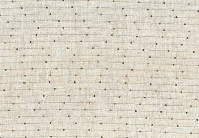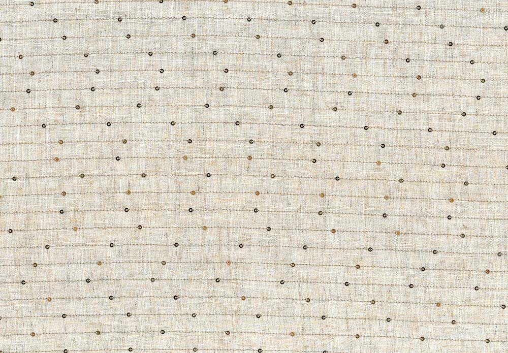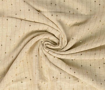 Fastvævet viskose hør mix i knækket natur farve med den klassiske look af struktureret hør med påsyet striber og små gyldne palietter.