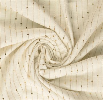 Fastvævet viskose hør mix i knækket hvid med den klassiske look af struktureret hør med påsyet striber og små gyldne palietter.