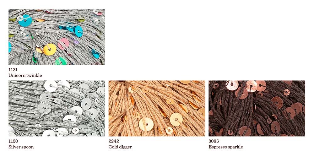 Forside › Garn › Sandnes Garn Paljett Varenummer: 211020251004 Spændende paliet effekt garn fra Sandnes Garn. Kommer i 4 klassiske farver. Palietterne måler mellem ca. 3mm og 6mm Kvalitet: 55%bomuld, 45% polyester Løbelængde: 50 g = ca. 140 m. Vask: 30 grader Sandnes Vælg variant 107,00 DKK pr. cminkl. moms Antal Køb Tilføj til Ønskeskyen Måske er du også interesseret i følgende produkter Cosmo 119,00 DKK