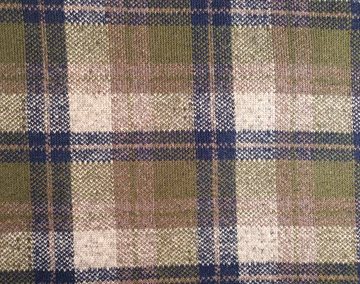 Dejlig kraftig uldstrik med børstet front og almindelig strikket look på bagsiden. Man kan også sagtens bruge den bløde børstet side indad. Store grønne tern brudt af mørkeblå, beige, sand.