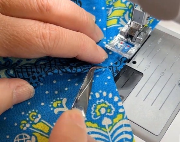 Åbn slidsen gradvist ved spidsen og sy videre. Pres sømmerummet ud.