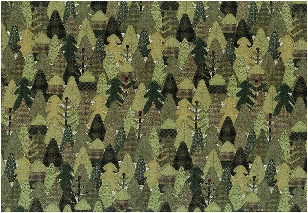 Fastvævet bomulds julestof fyldt med forskellige grantræer/juletræer.