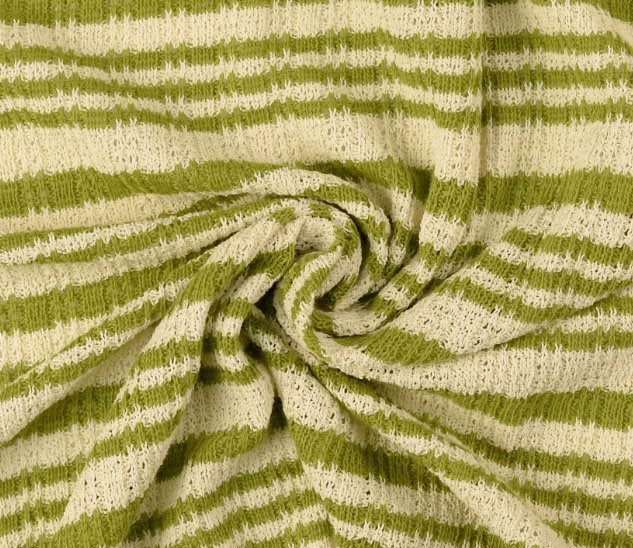 Blød bomuld polyester mix med struktureret strik mønster og i grøn og creme hvid farve.