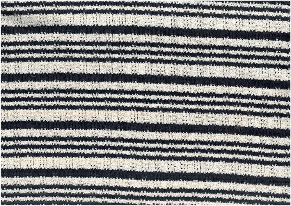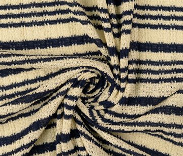 Blød bomuld polyester mix med struktureret strik mønster og i navy blå og creme hvid farve.