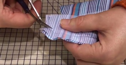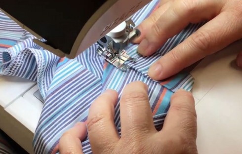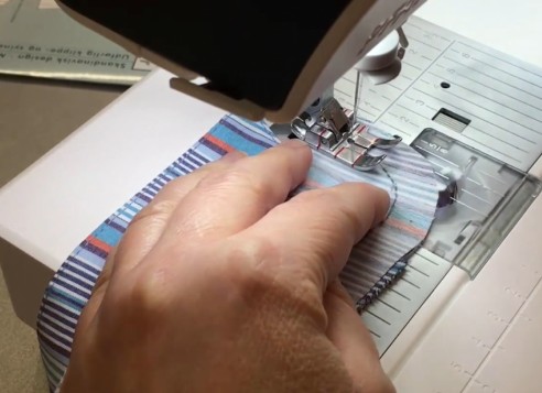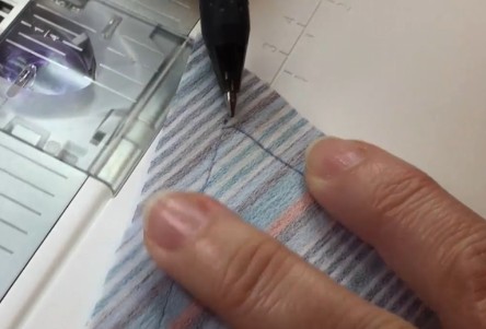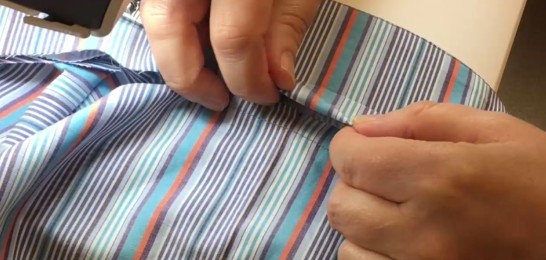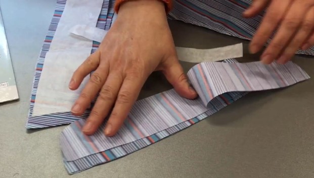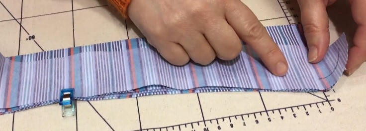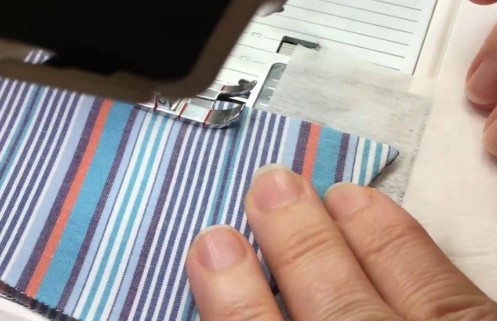 I løbet af videoen henviser hun til vores video om forberedelse af stof med vlieseline