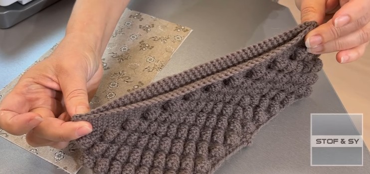 Mål åbningen og dybden af den hæklede clutch og klip foer og lomme med 1 cm sømrum.