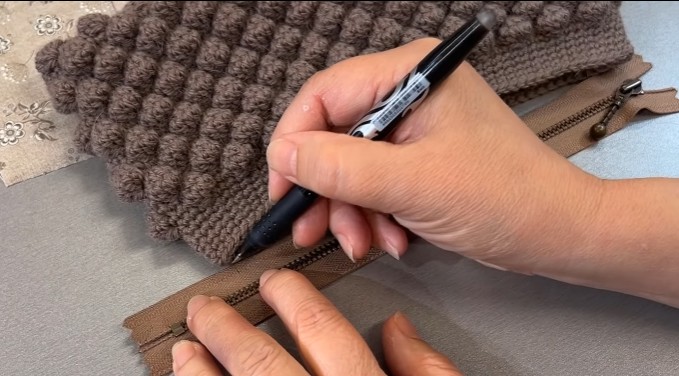 Marker start og slut på lynlåsen med en Frixion markeringspen.