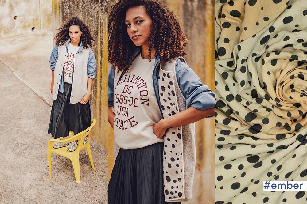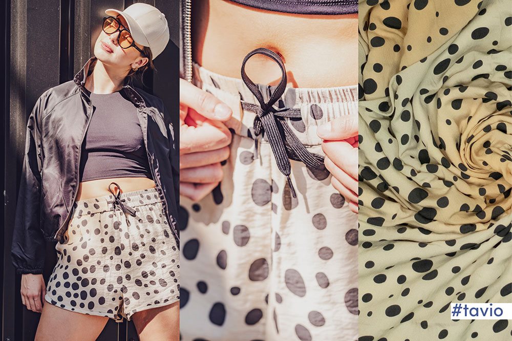 Tavio Ember Beige er en let fastvævet modal kvalitet i nuanceret beige med hyæne prikker.
