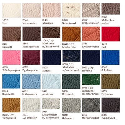 Lækker uld garn fra Sandnes garn i 20 farver ens farver og 5 tweed.
