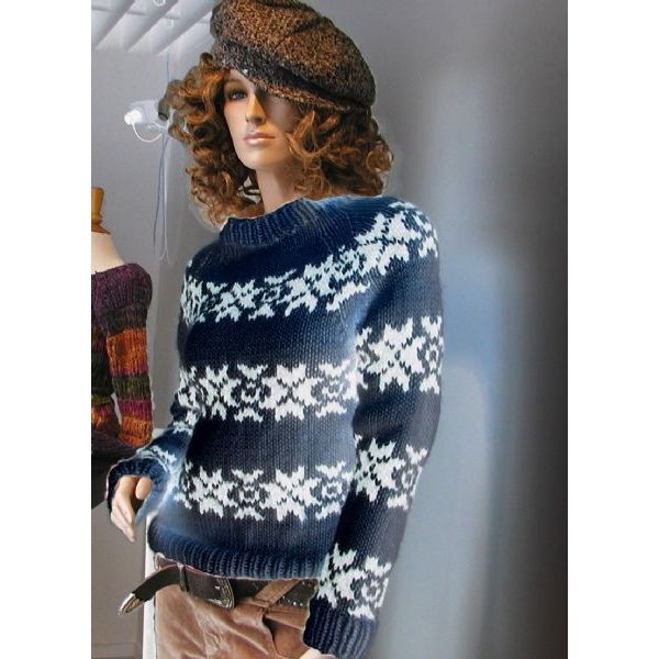 Ulden Strik trøje ala Sarah Lund - Marine bund med lyse stjerner, L-XL