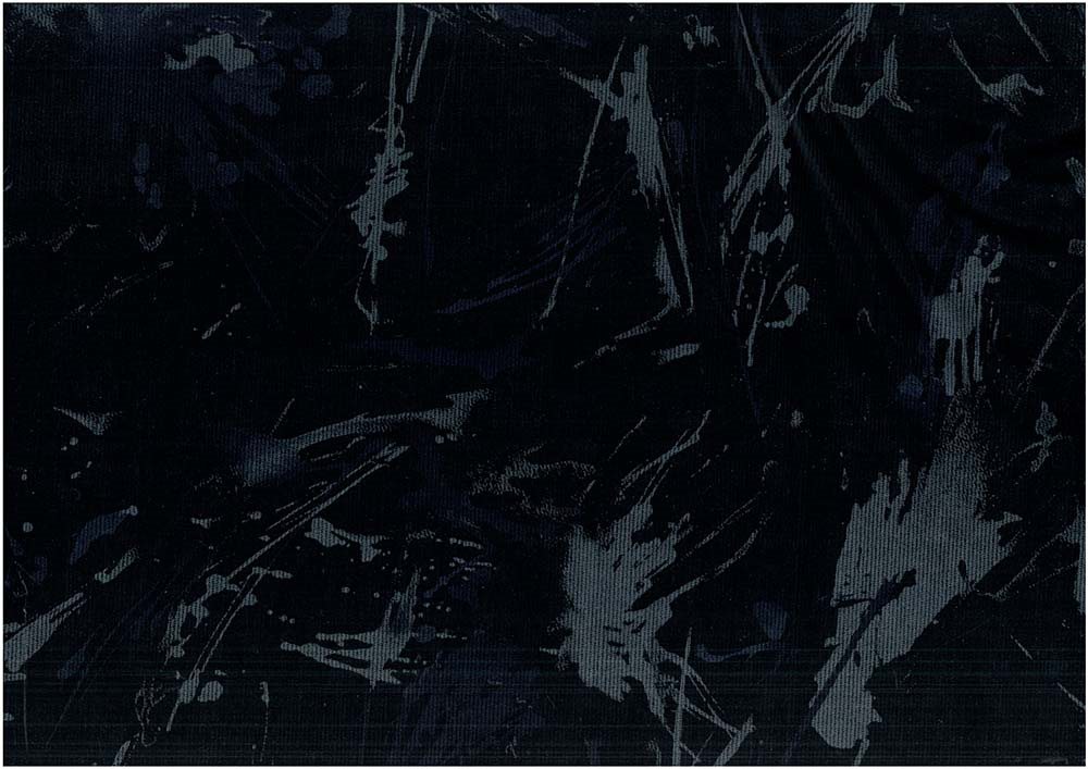Fastvævet bomulds babyfløjl med i helt mørk marineblå med blå nuancer splat mønster i forskellig størrelse.