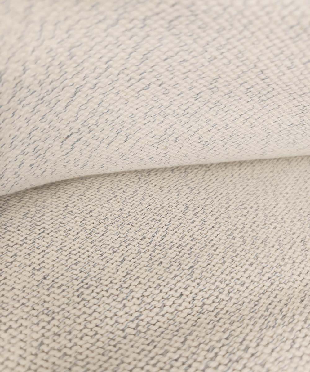 Lækker blød mellem kraftig bomulds strik i meleret råhvid med blå med tungt fald. Se evt. billede 2 for close up.